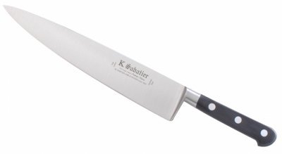 Authentic Sabatier Forged Knives. The whole knife is forged in a single mass of CARBON steel. The steel, Rockwell 54-56 HRC, is tempered, ground and polished crosswise to produce a high-quality tool, great cutting power, cutting hardness and balance. POM handles are manually set and mounted on the tang using three through rivets.